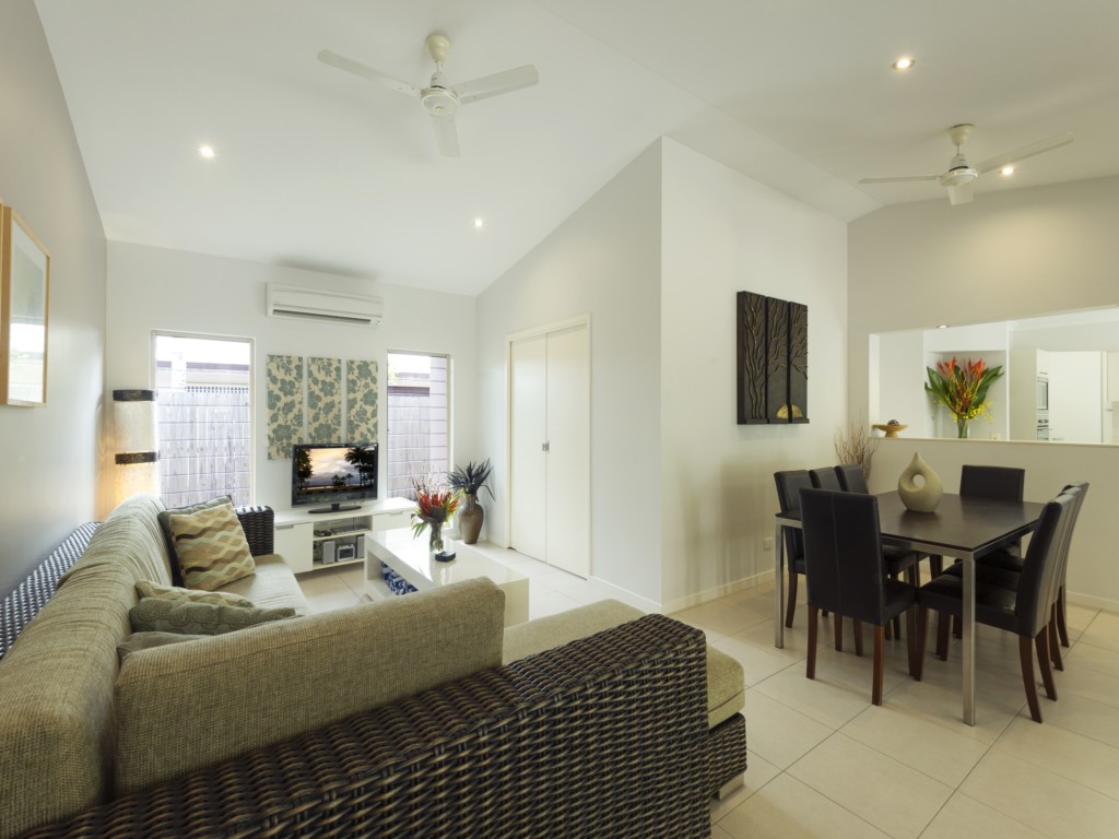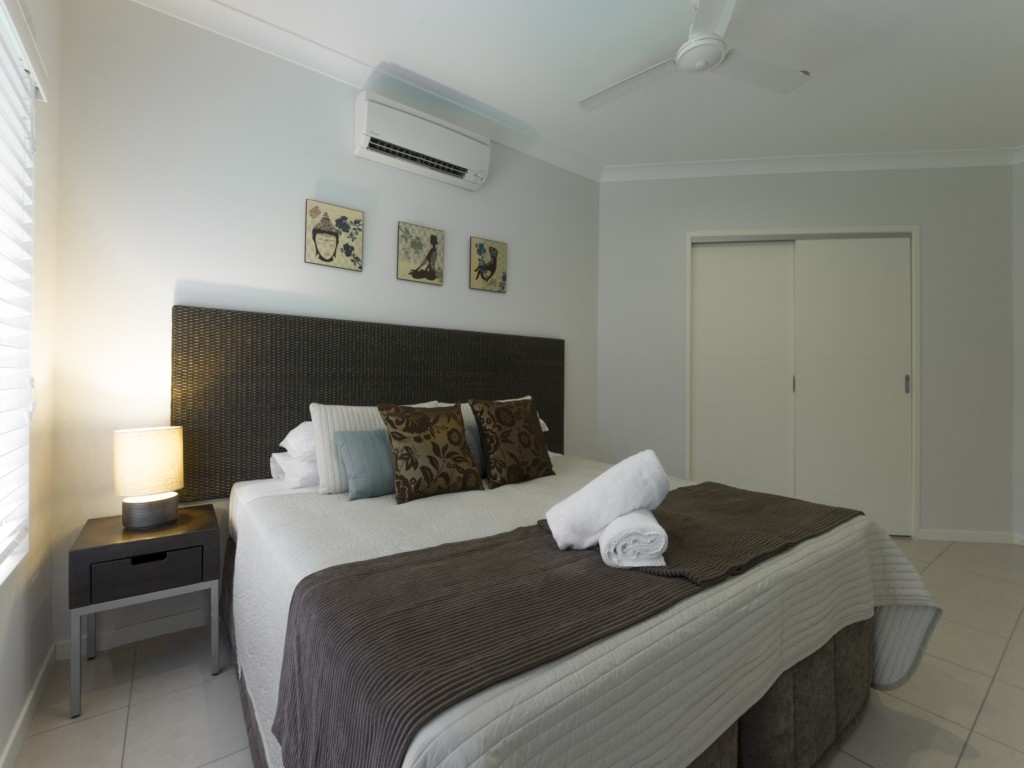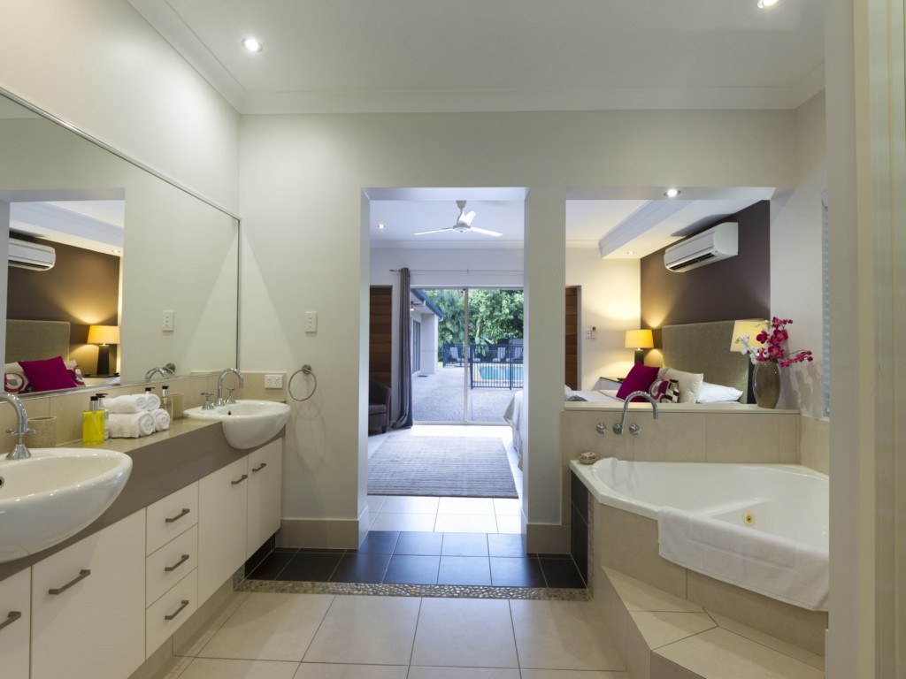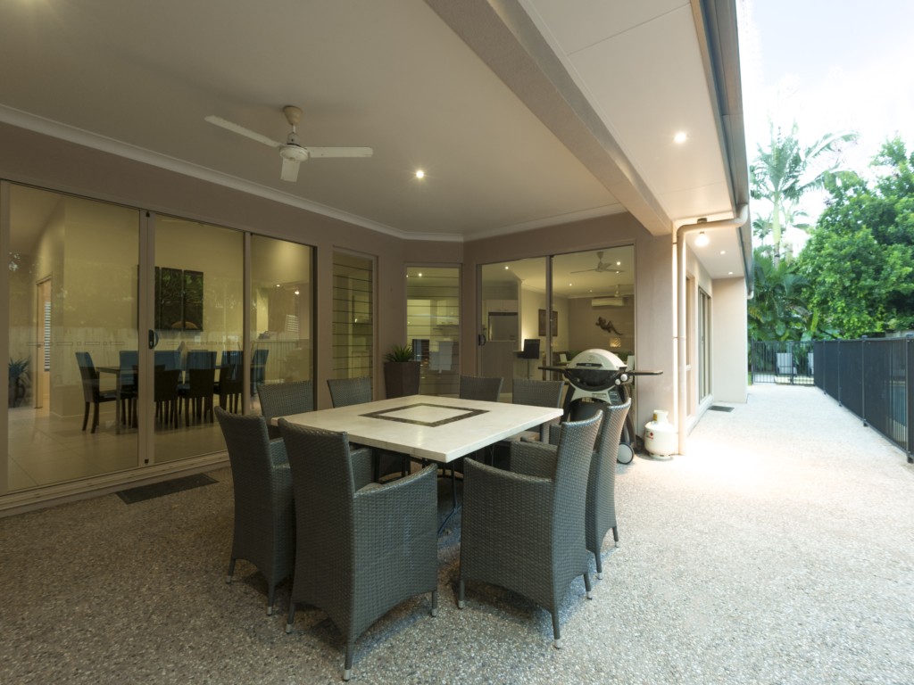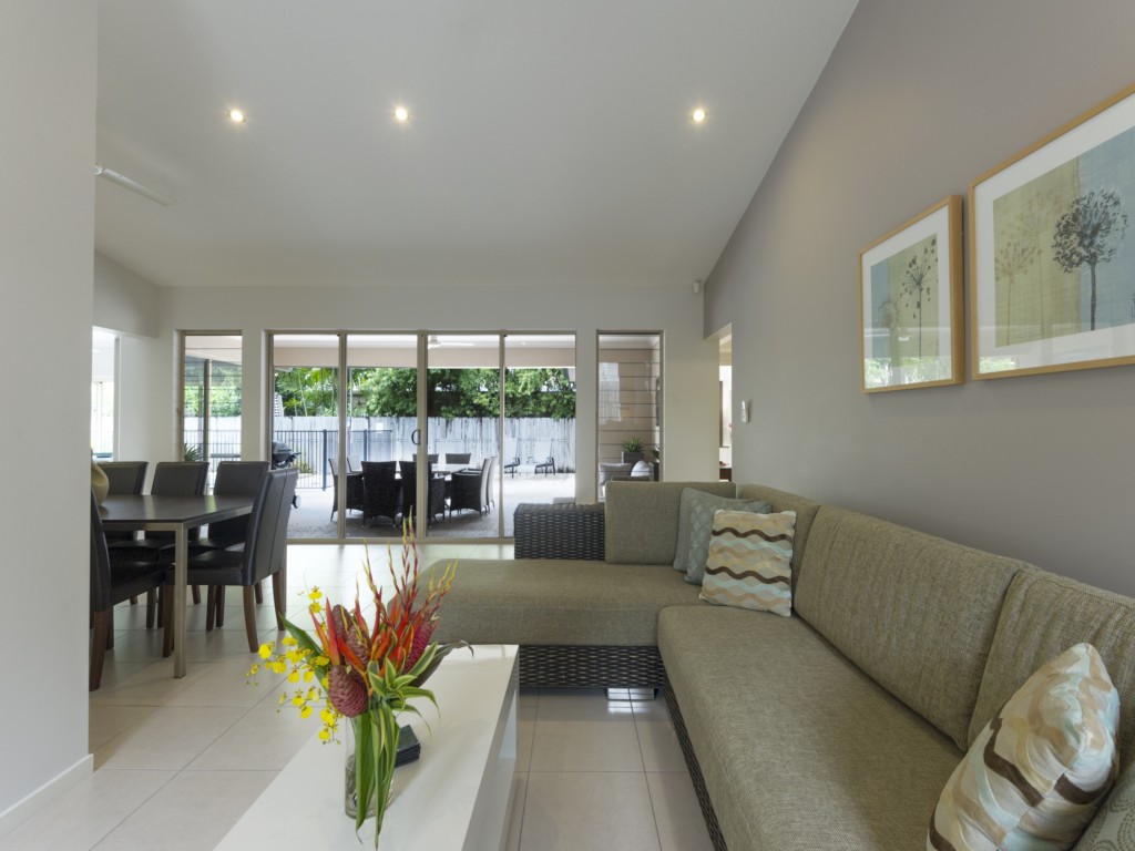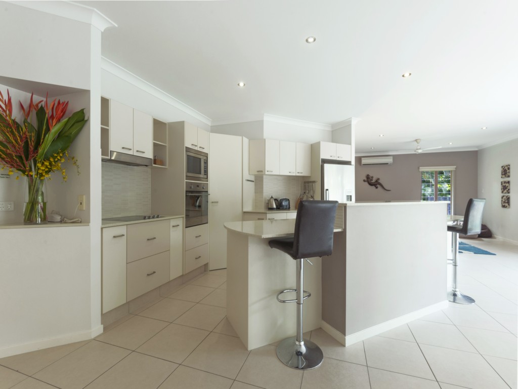Aqua@Pecten is a well laid out 4 bedroom home offering a large space indoors and outdoors and its location a few minutes walk to the beach makes it perfect for your next holiday in Port Douglas. A gourmet deli, family restaurant, kids playground and bottle shop are just a short stroll away. There’s a world-class golf course within walking distance too. And if you don’t want to hire a car, a bus stop is just around the corner for easy access to the many restaurants and shops in Port Douglas.