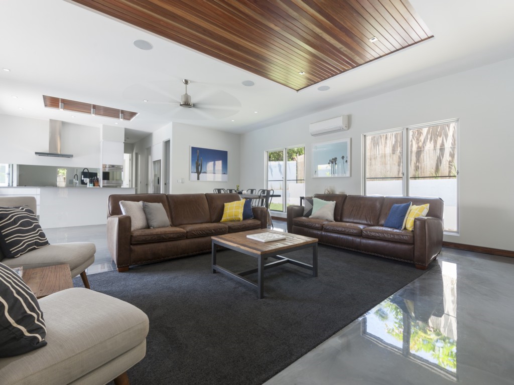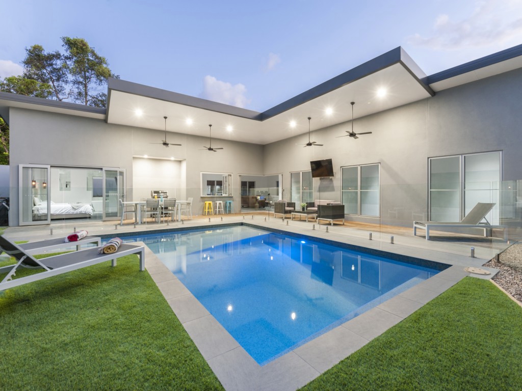 This brand new home has so many features – amazing cool resin polished floors, contrast with plush carpet in lounging areas and bedrooms. Modern comfortable leather lounges, new surround sound entertainment systems, double bi-fold glass doors and a bi-fold servery kitchen window all opening to expansive deck,