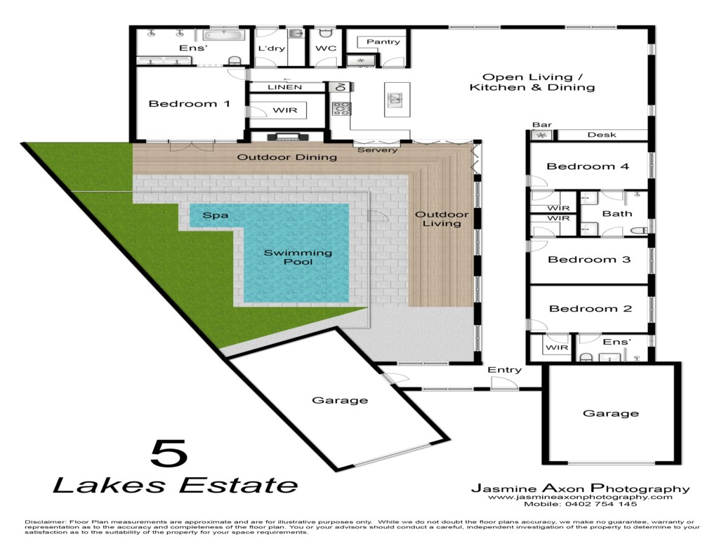 The property is ideal for families, A spacious master bedroom with King Size bed, French doors opening onto the pool area, a walk in robe, television and luxury ensuite with double shower and vanity and a free standing bath.